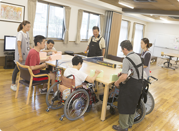 生活介護・入所支援サービスは「個別支援計画」に基づいて行われます。この「個別支援計画」はご利用者様の自立生活を支援し、様々な問題の解決を目標としてサービス管理責任者が作成し、サービス担当者会議で確認された後、ご利用者様に同意を頂くものです。